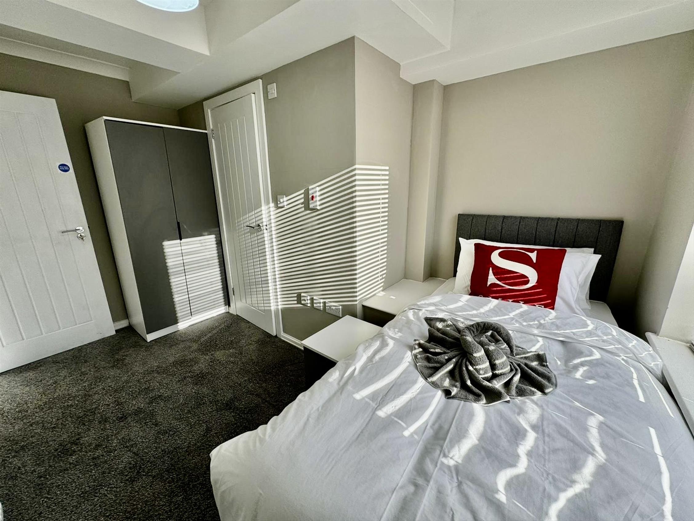 Upstairs are three further bedrooms all with shower en-suite bathrooms, beds, mattresses, curtains and wardrobes.