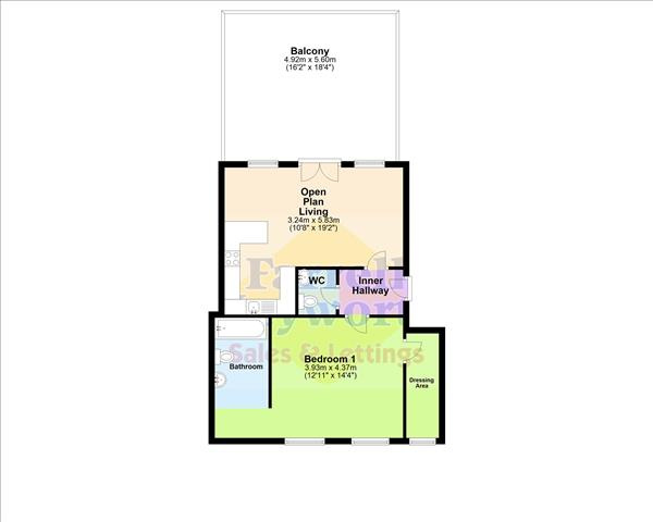 - Open Plan Lounge, Dining & Kitchen, WC, Balcony
