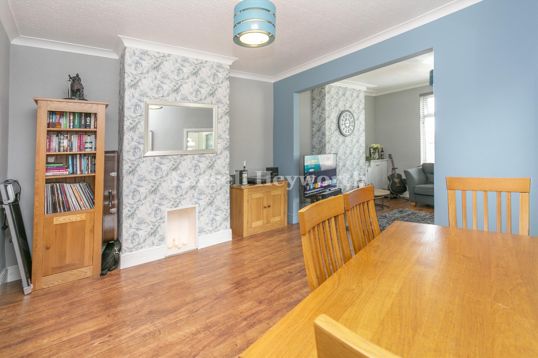 This home has two reception rooms with feature fireplaces, adding character and charm. The extended dining kitchen is fitted with a good range of units and breakfast bar, and provides a practical and inviting space for daily living. To the first floor are three bedrooms all with fitted storage and a family bathroom.