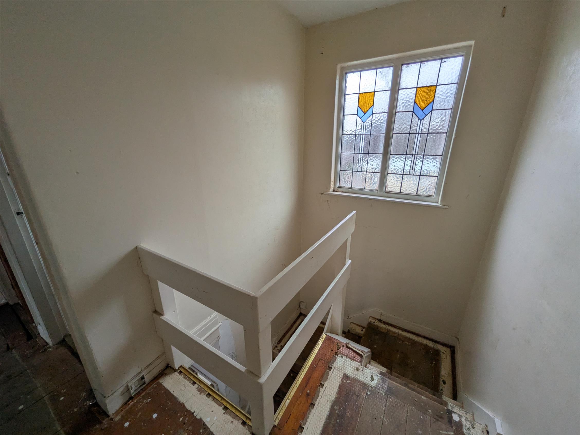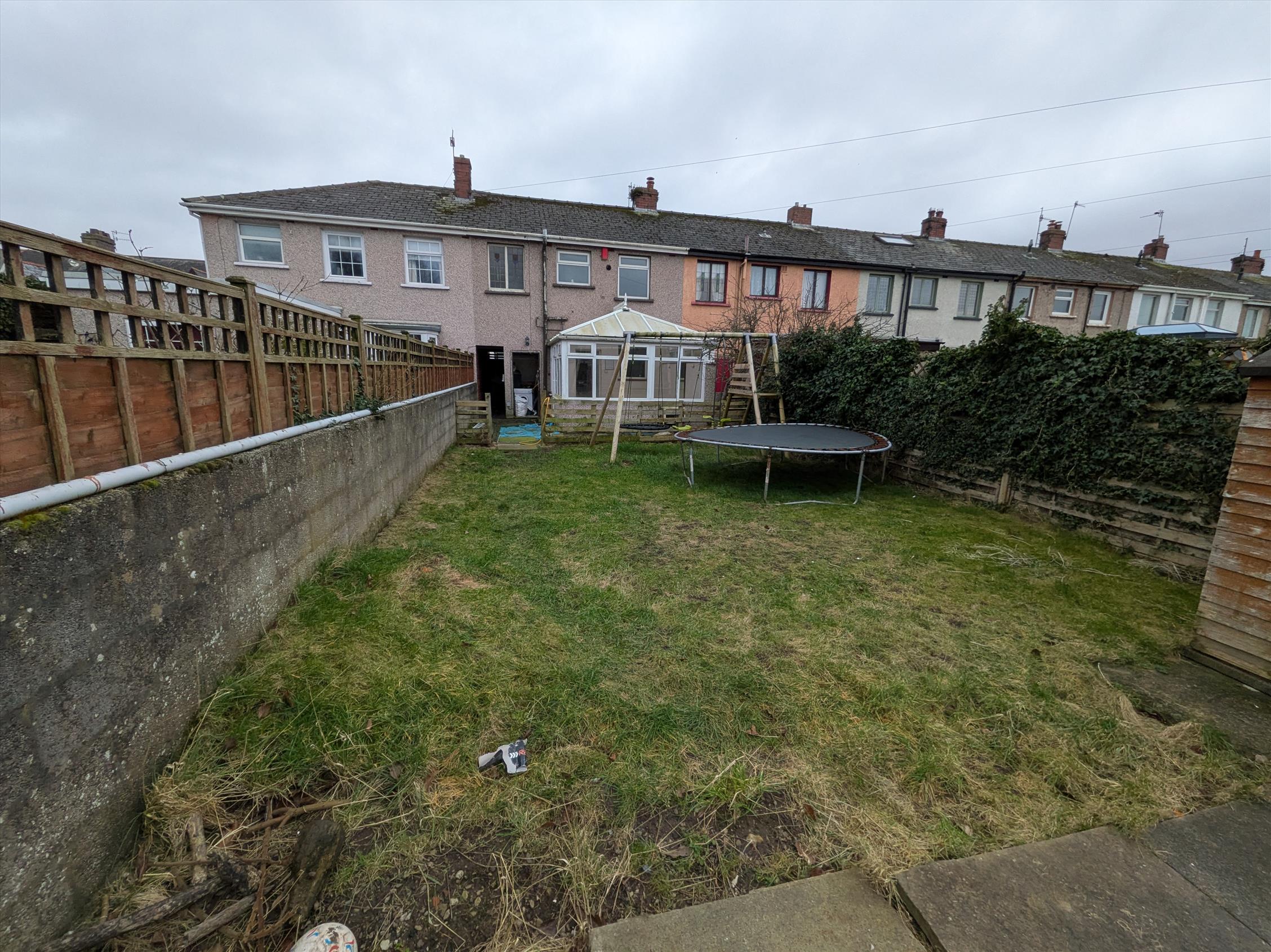 The property offers period features from bay fronted window to the stain glass windows in the landing area. The property is a blank canvass offering a lounge to front with kitchen area and conservatory to rear. Upstairs you have three good size bedrooms along with family bathroom. The property has a shared access from front garden to rear with neighbour. The garden to rear is extensive with a lawned/play area with patio area to rear plus large outbuilding. Also there is a lawned area to front with a brick wall boundary.