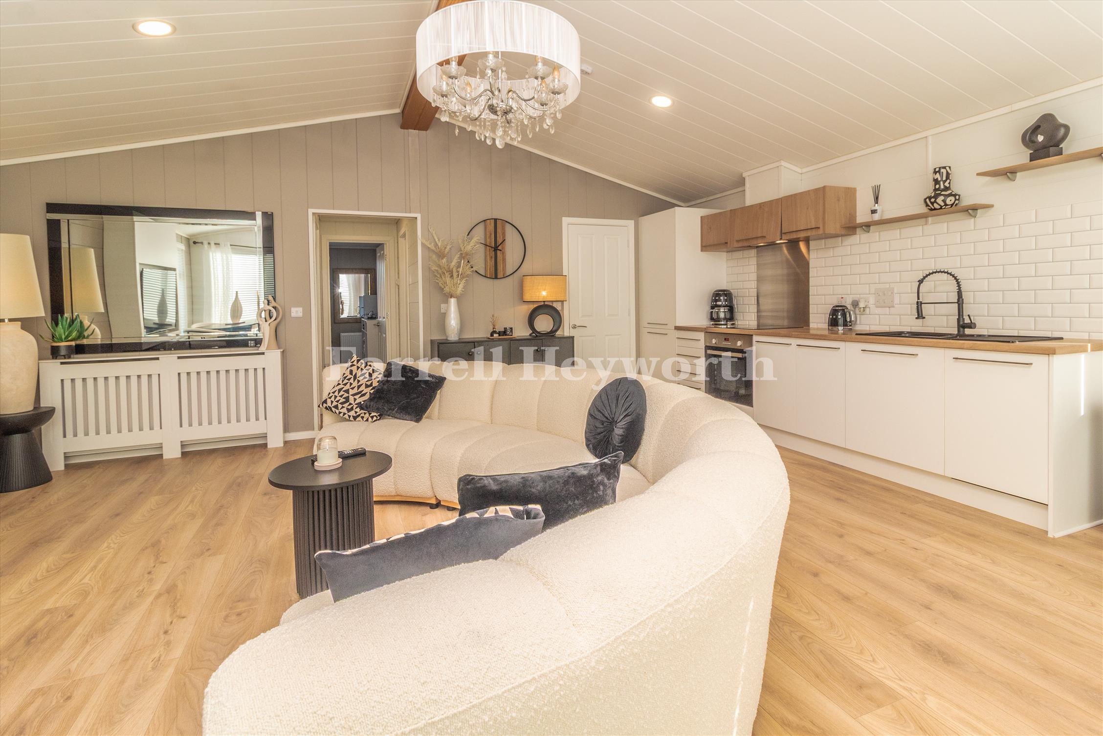 Comprises: Superb open plan living area incorporating lounge diner and lovely fitted kitchen. French Doors lend access onto the raised timber decked seating area to two sides making it ideal for outside dining/entertaining. There are two double bedrooms with en suite to the master and a separate three piece bathroom.