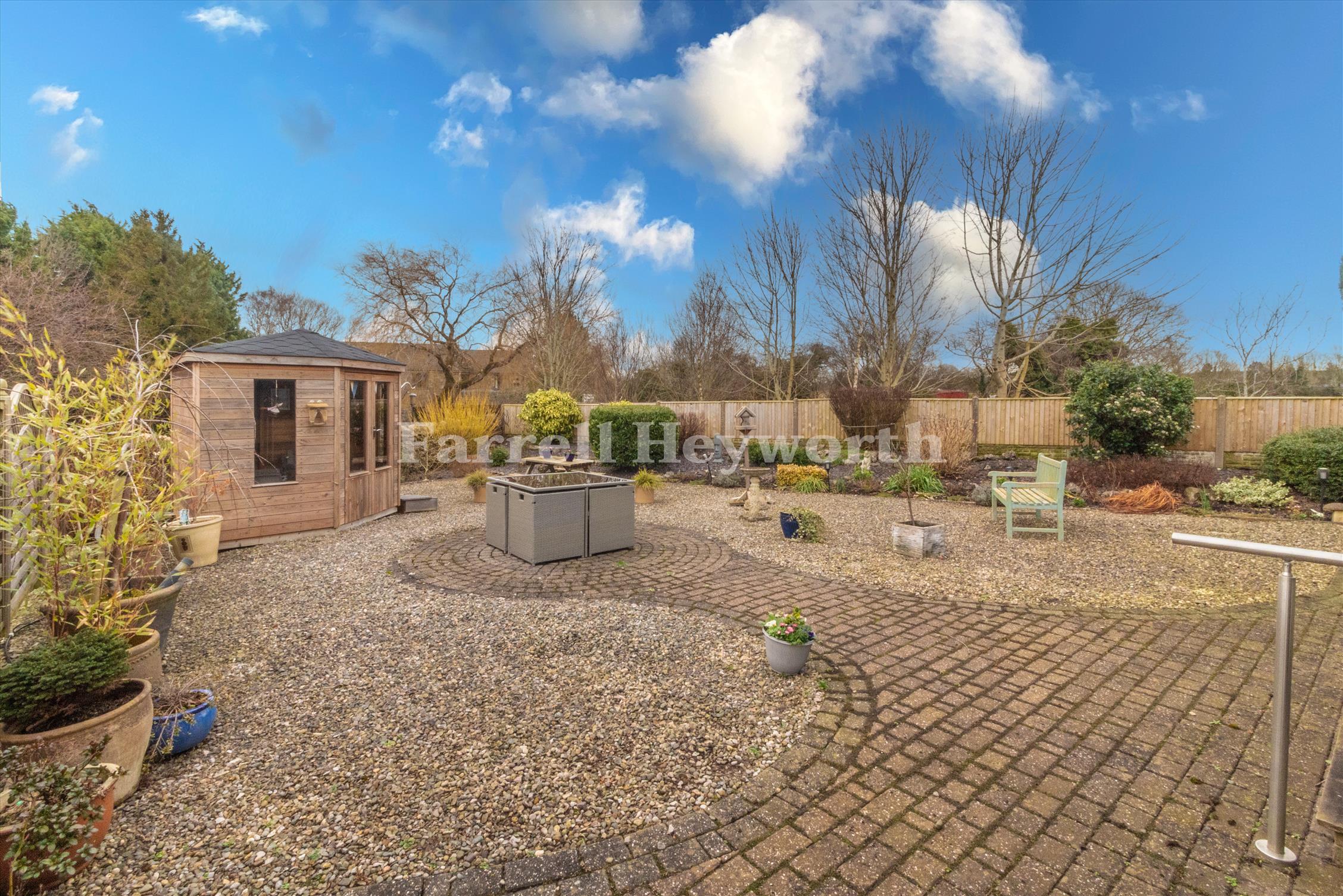 Externally, the property enjoys an impressive frontage with a mainly lawned garden framed by mature trees and shrubs. To the rear, a substantial low-maintenance landscaped garden provides an ideal space for relaxation or entertaining.