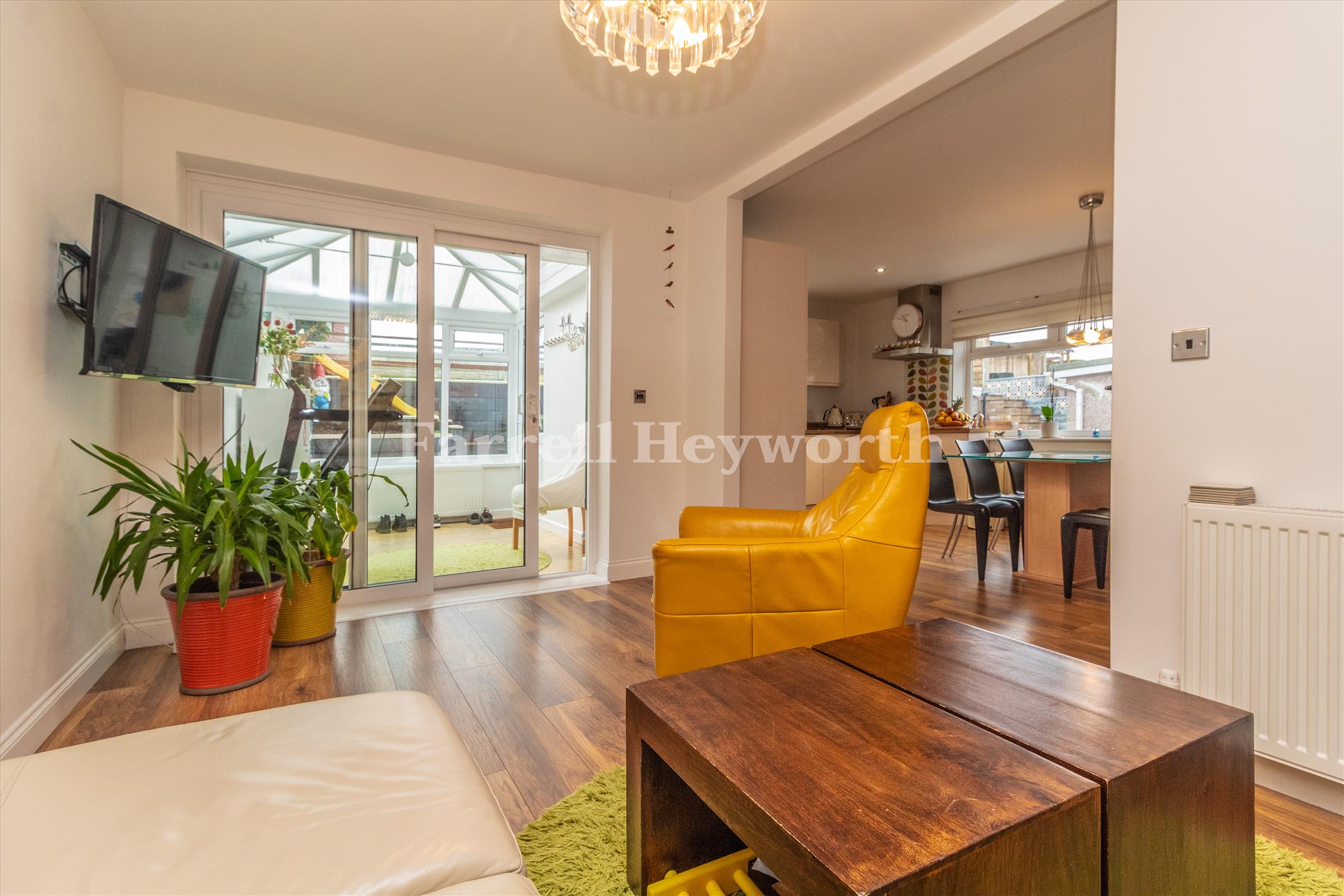 Ideal for the growing family, the impressive and flexible living space briefly comprises: Porch, entrance hallway, two ground floor double bedrooms, shower room and a fantastic open plan living area incorporating a stylish fitted kitchen diner and family area with patio doors lending access to a conservatory.