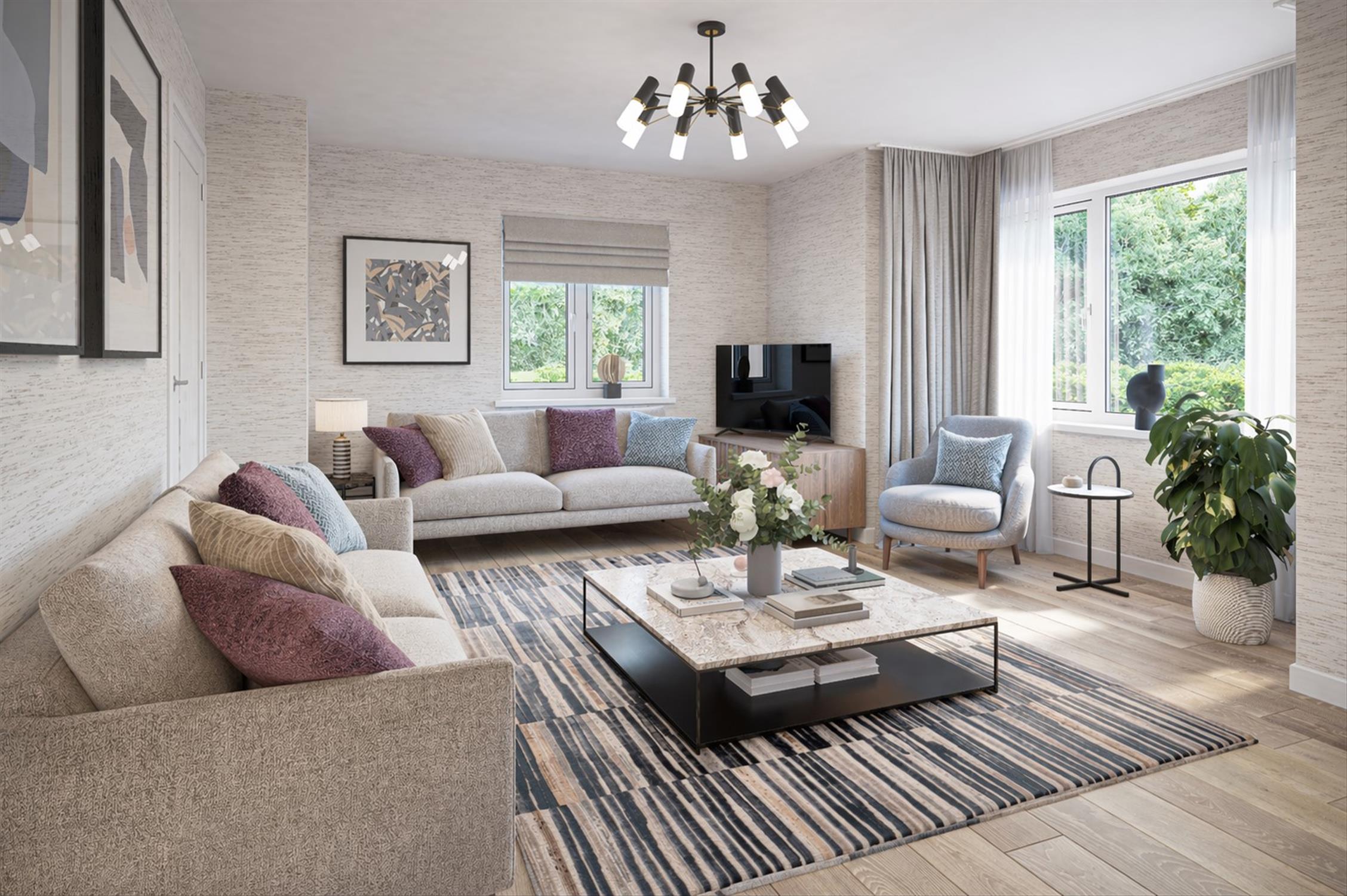 This attractive and highly sought-after three bedroom detached house offers ample room for a growing family. The generous open plan LEICHT kitchen, complete with dining area, features beautiful French doors that lead out to the rear garden and patio area. The ground floor living area is further enhanced by an entrance hall, a separate lounge, and a convenient cloakroom. On the upper level, the delightful master bedroom boasts its own private en-suite shower room, while two additional bedrooms and a luxurious family bathroom provide ample space for everyone's requirements. The property comes with a two year build warranty, plus a 10 year LABC insurance-backed warranty, giving you peace of mind that your new home has been built to the highest standard.