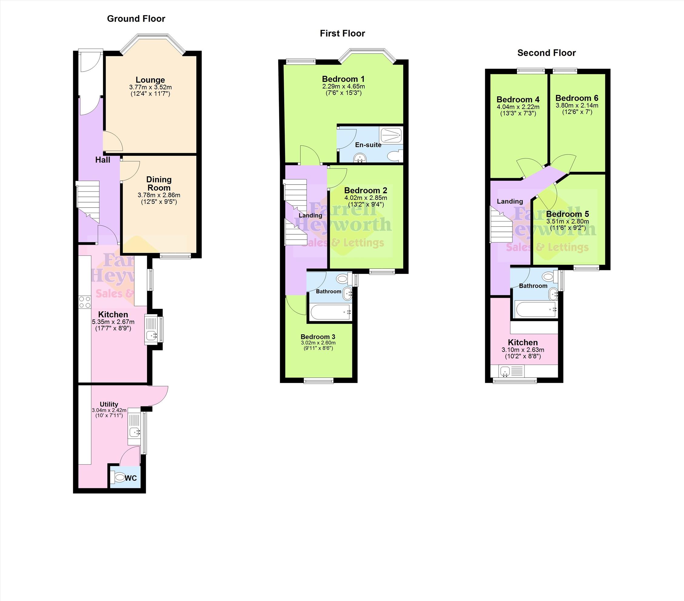 Internally, on the ground floor the accommodation comprises; entrance hallway, two spacious reception rooms, modern kitchen, good size utility room and WC. To the first floor are three bedrooms, with en suite to the master and a bathroom. To the second floor there are three further bedrooms, a bathroom and a kitchen.