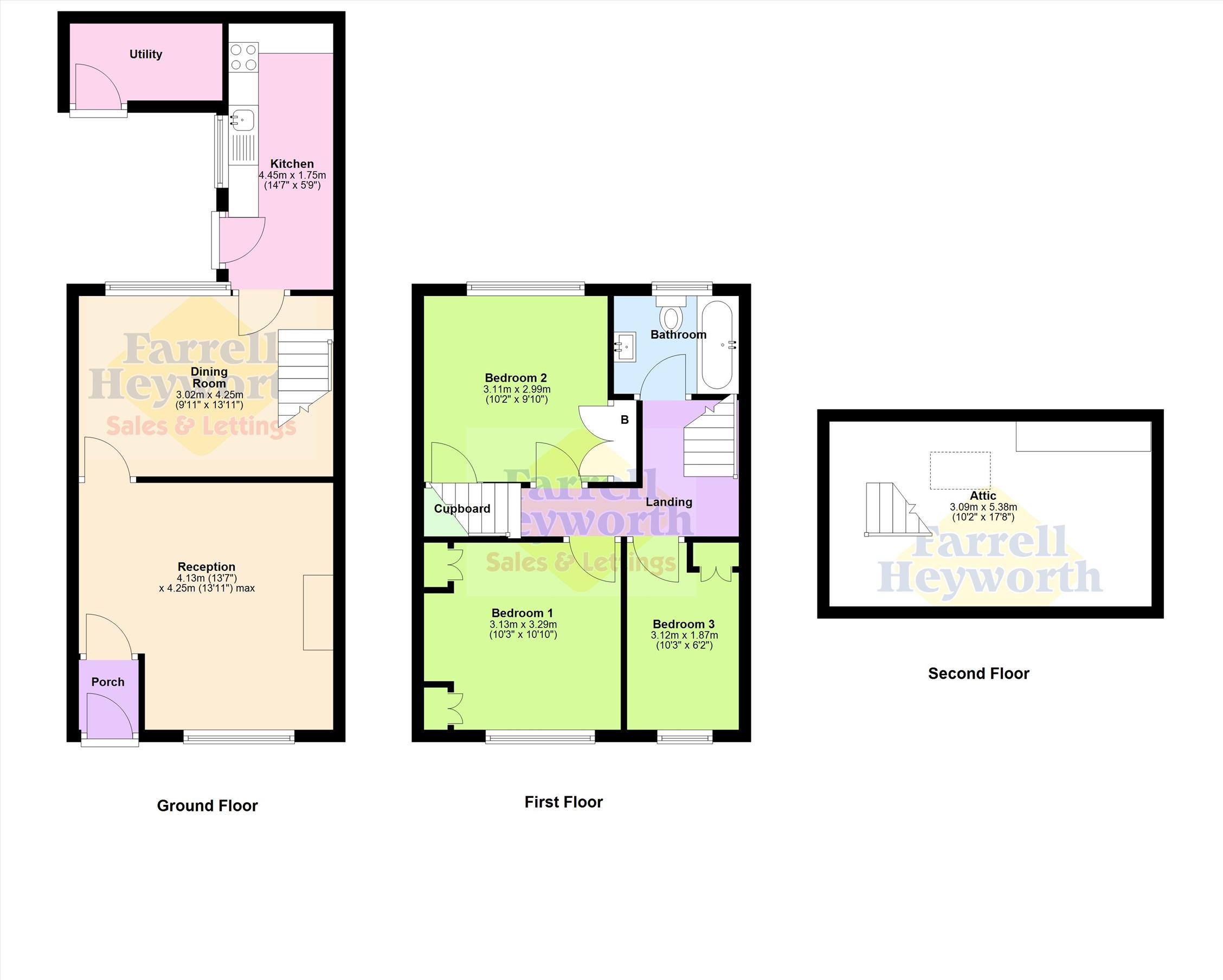 The accommodation also includes a family bathroom and an attic room accessed via a dedicated staircase, providing flexible space for a variety of uses.