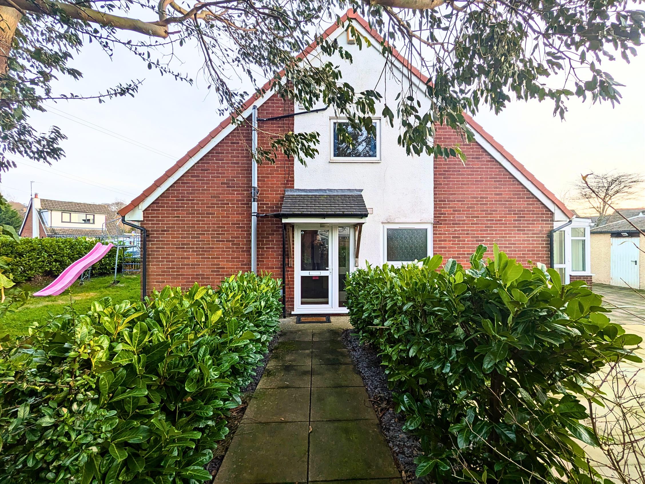 There are laid to lawn garden areas to two elevations and an enclosed low maintenance paved garden area to the rear. Double width driveway and a larger than average detached garage with up and over and personal door.