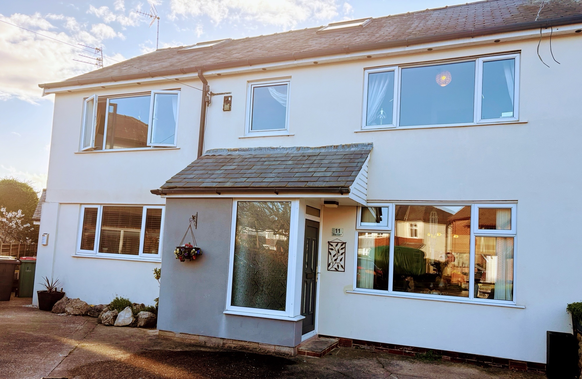 The property occupies a generous plot with: Attractive lawned gardens and established boundaries offering privacy. Driveway parking for multiple vehicles. Substantial double garage with excellent loft storage — perfect for seasonal items or long-term storage. Private rear garden, ideal for families, outdoor dining or simply enjoying the peaceful surroundings with water feature.