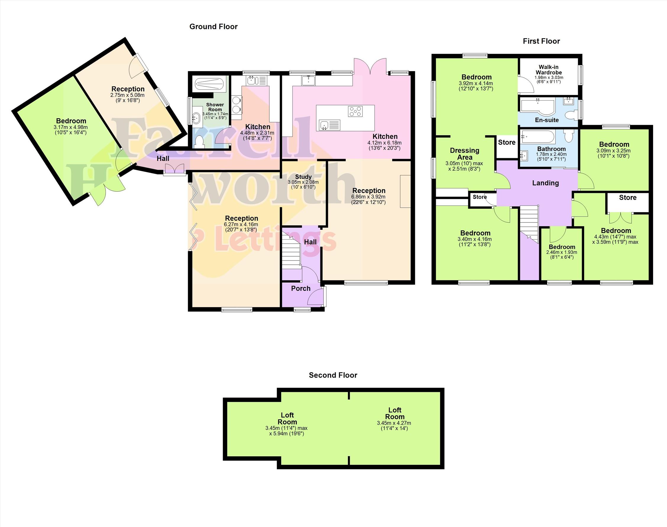 Five well-proportioned bedrooms, providing ample space for a growing family. Family bathroom. Luxurious master suite complete with private dressing area, stylish en-suite shower room and spacious walk-in wardrobe.