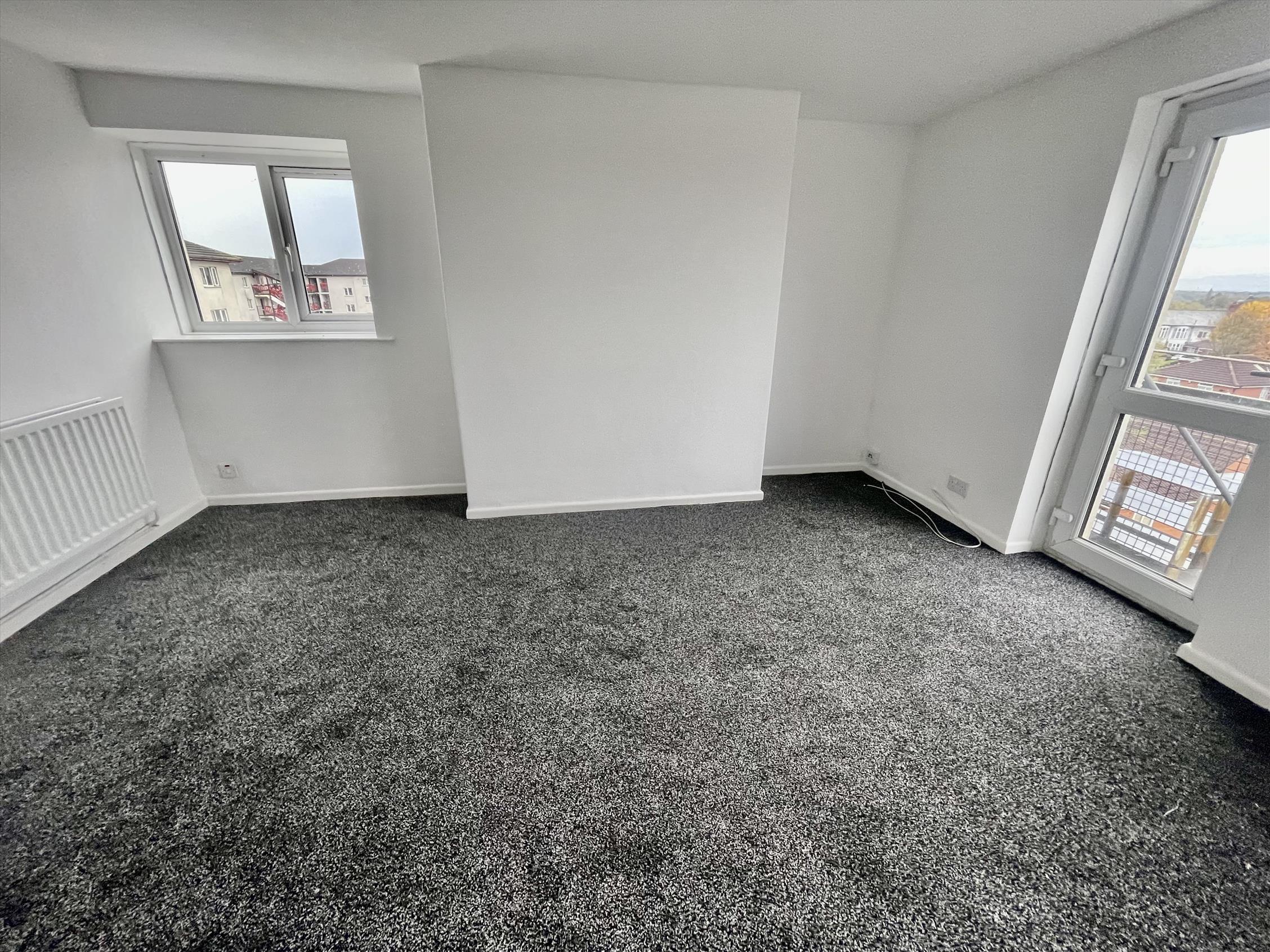 Internally it comprises of an entrance hallway, modern kitchen with appliances and under-counter space for white goods, living room with access to balcony and integrated storage cupboards. Upstairs, there are two double bedrooms with a three piece suite bathroom with shower over bath.