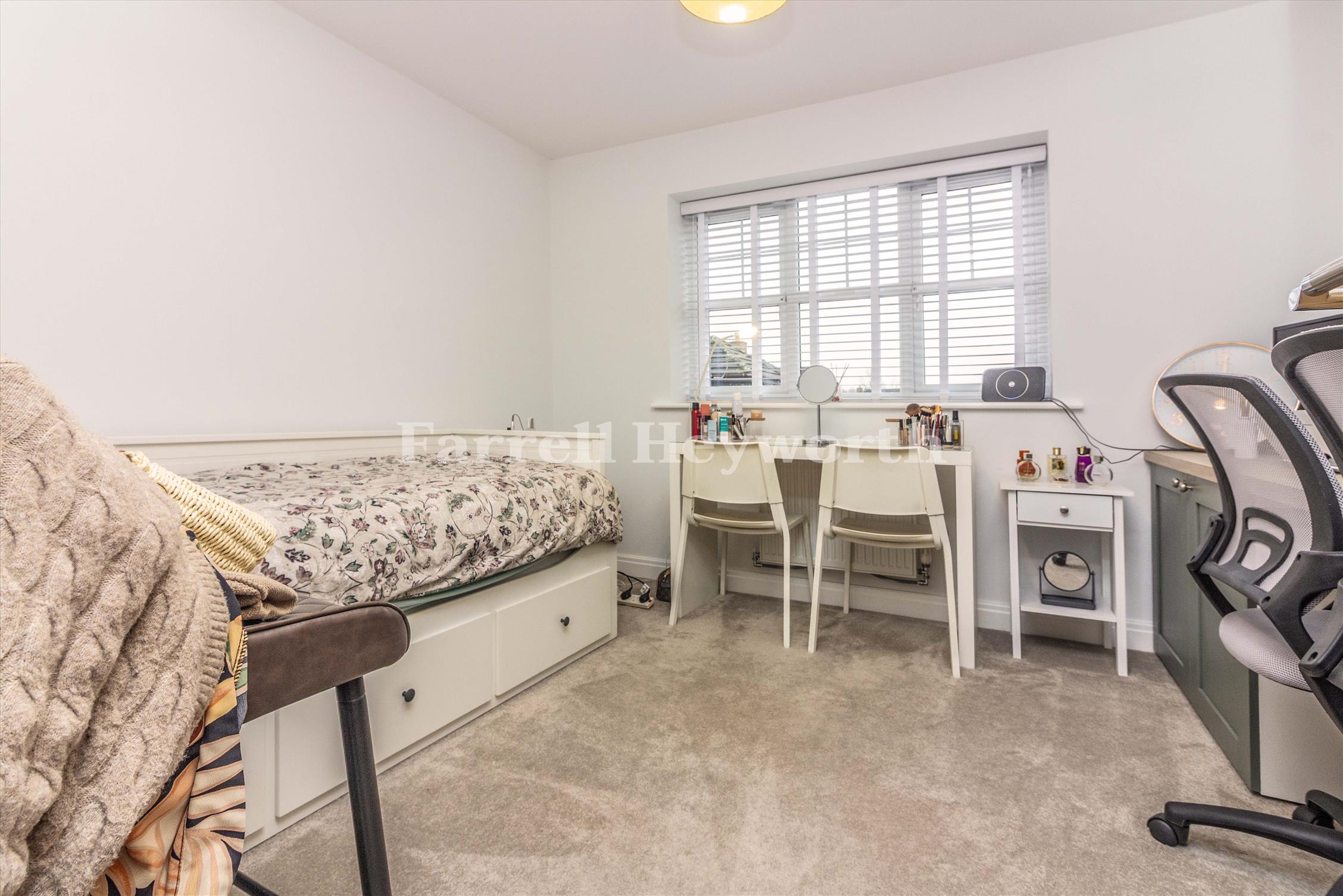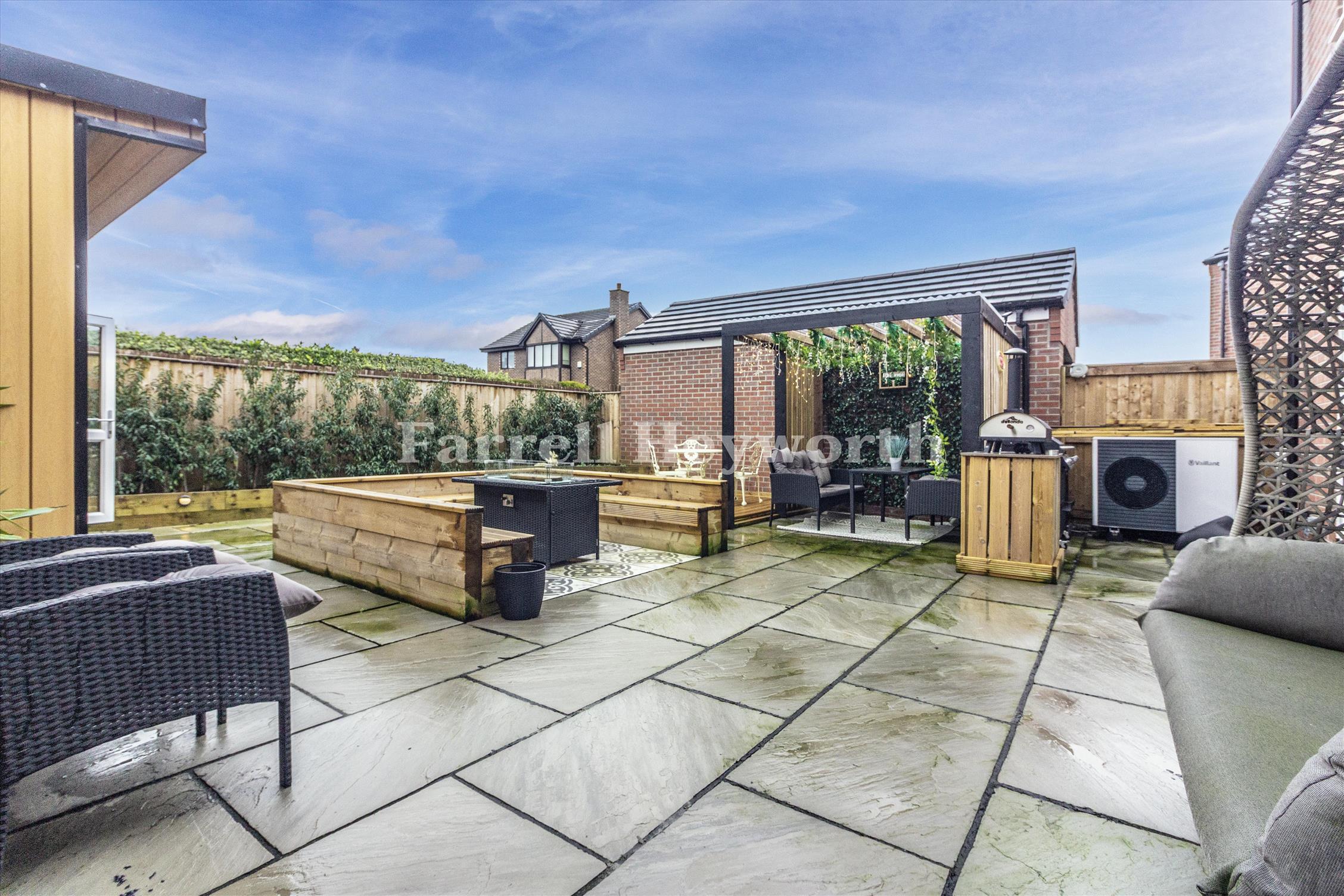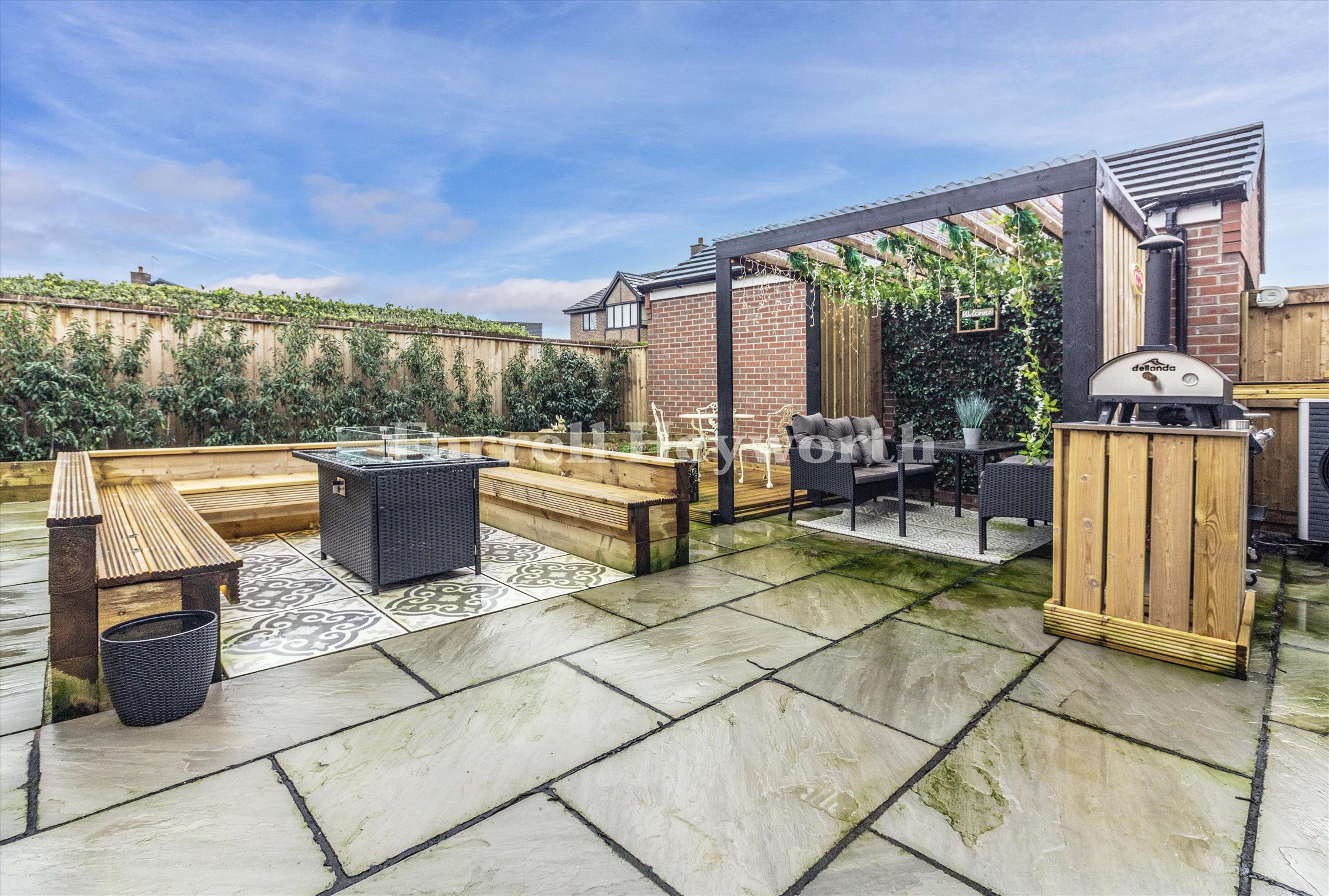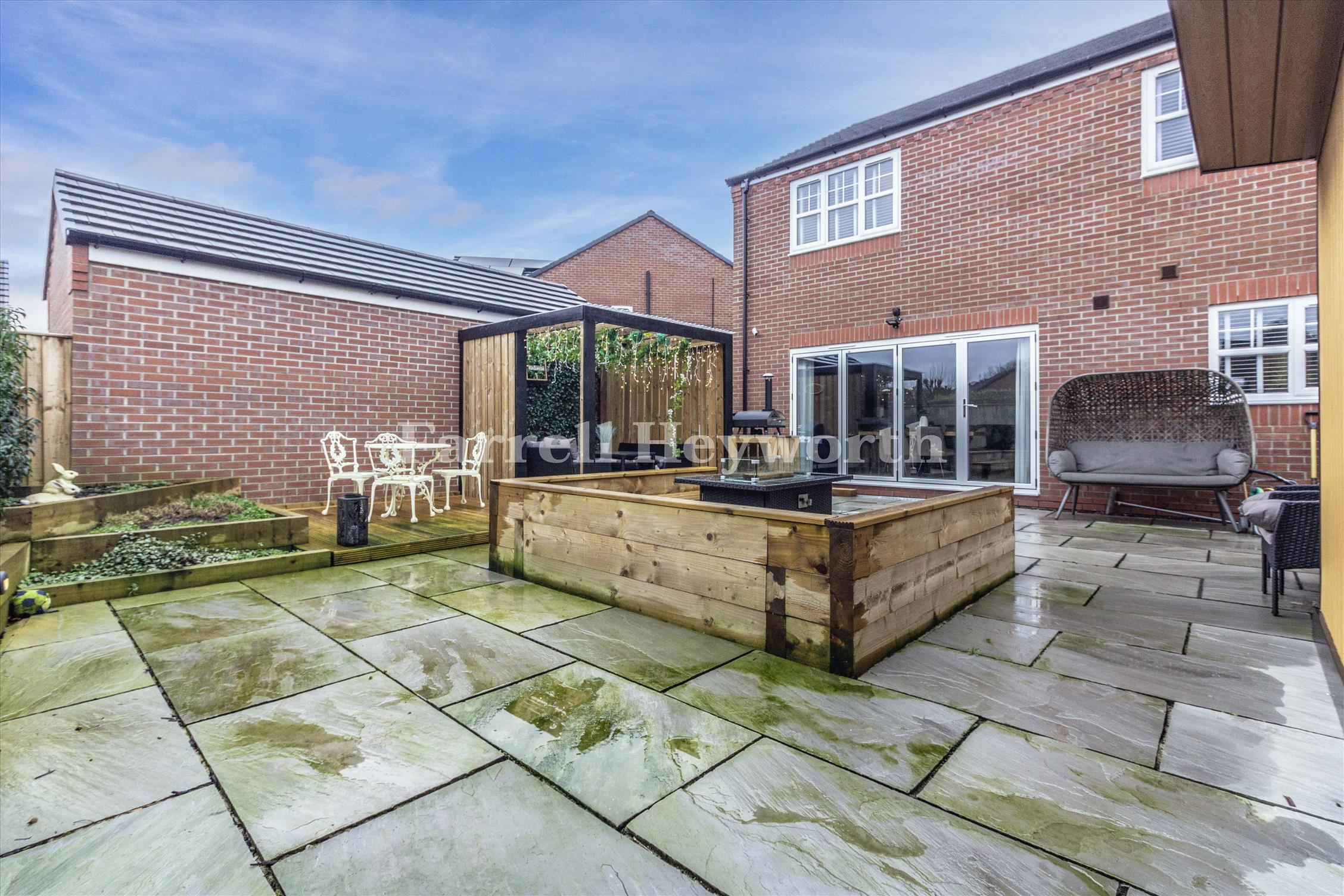 Upstairs, four well proportioned bedrooms offer flexibility for family living, guests, or home working. The master bedroom benefits from an en suite, and a modern family bathroom serves the remaining rooms. Outside, the property enjoys a well maintained low maintenance rear garden with patio area — ideal for relaxing or hosting gatherings with the added benefit of an outbuilding that is currently used as a gym but could be a home office if desired.