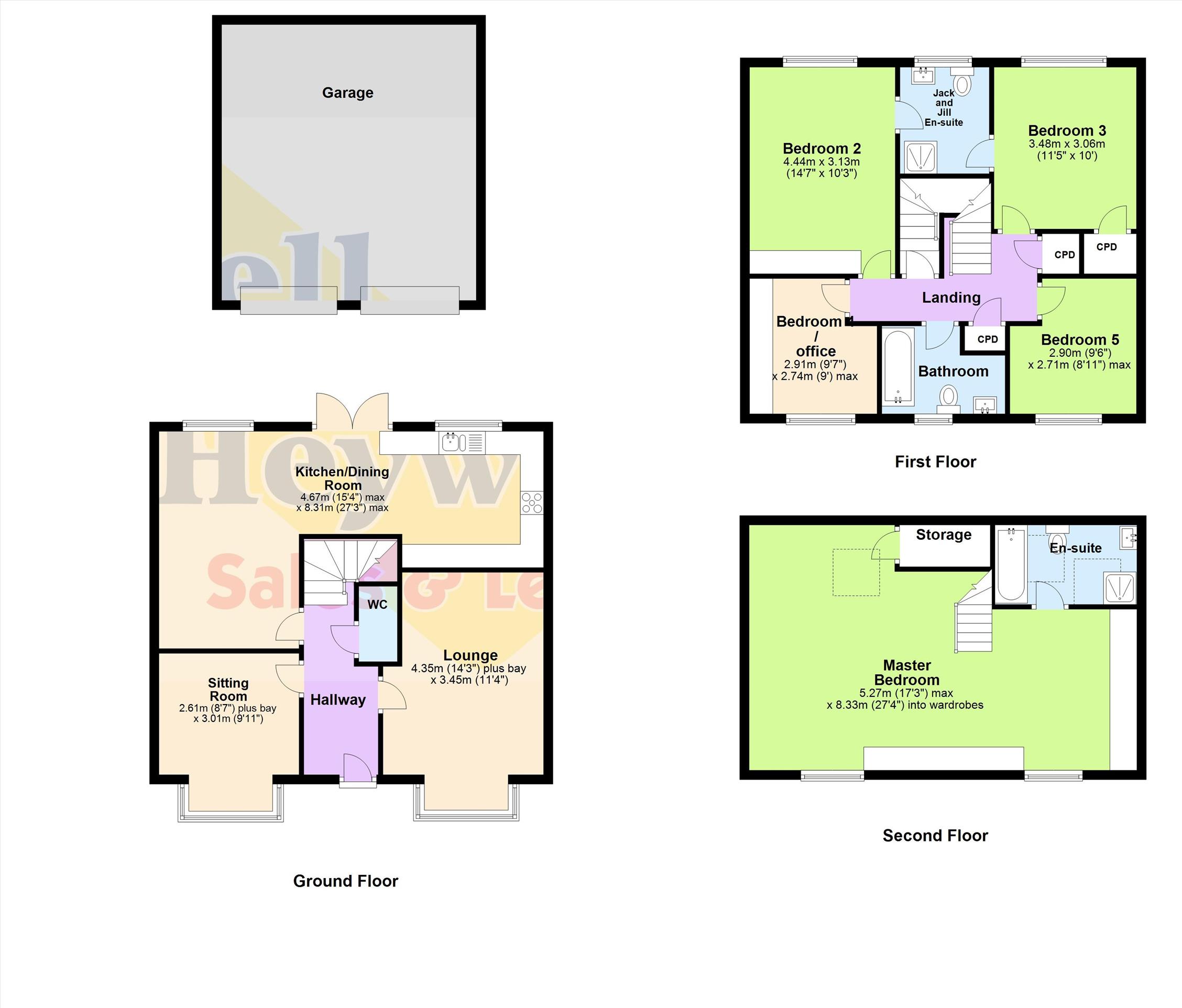 To the first floor, there is a family bathroom and four bedrooms of which two have Jack and Jill en-suite facilities. Bedroom two has highly quality fitted wardrobes and bedroom four currently used as an office has highly quality fitted furniture.